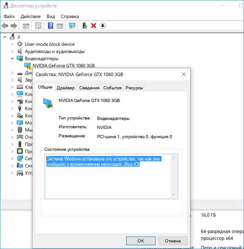 Ошибка видеокарты с кодом 43 частое явление на устройствах, где блок питания не соответствует минимальным требованиям. Часто так бывает, что видеокарта покупается со временем, а блок питания покупается под начальные требования ПК. В результате, установив видеокарту, блок питания не может выдать достаточной мощности для реализации её возможностей.