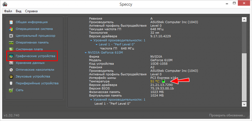 В некоторых случаях ошибка может быть вызвана перегревом видеокарты, спровоцированным повышенной на нее нагрузкой или недостаточно эффективным охлаждением. Косвенным подтверждением перегрева может стать временное появления артефактов на экране. Проверьте температуру видеокарты с помощью Speccy или аналогичных утилит, сравнив полученные результаты с максимально допустимыми показателями для данной модели видеокарты на сайте производителя. Если её температура близка к критической, обеспечьте максимально эффективное охлаждение оборудования.