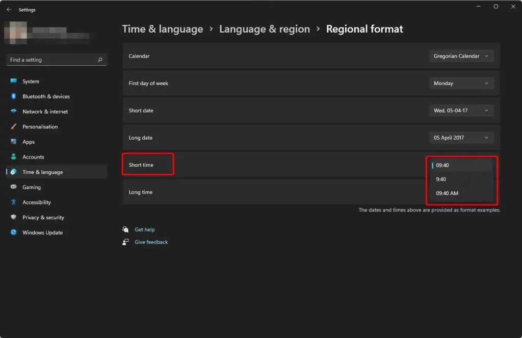 Note: You cannot set “Long date” or “Long time” because Windows 11 no longer supports date and time in the calendar flyout.