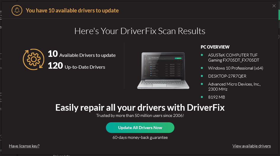 Или нажмите Обновить все для автоматической загрузки и установки правильной версии всех драйверов, которые отсутствуют или устарели в вашей системе (для этого требуется версия Pro – вам будет предложено обновить, нажав Обновить все ).