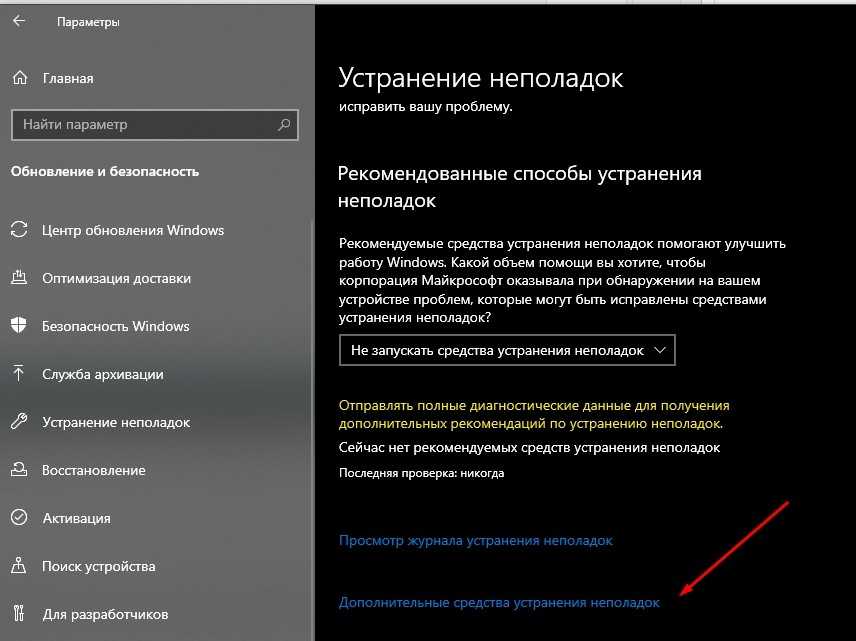 Щелкните ЛКМ по надписи «Дополнительные средства устранения неполадок».