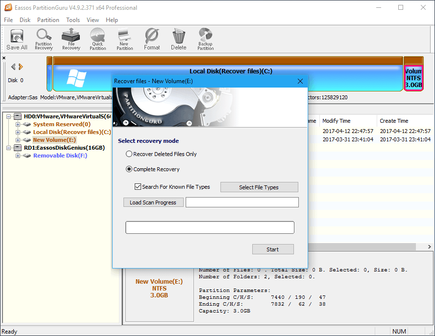 Step 3 Select the partition again, click «File Recovery» button and click «Start» button. DiskGenius starts scanning the volume.