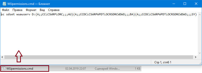 1. На всякий случай делаем бекап текущих разрешений для службы wuauserv, для этого: