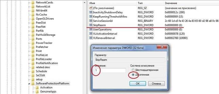 параметру REG_DWORD с именем SkipRearm присвойте значение 1: