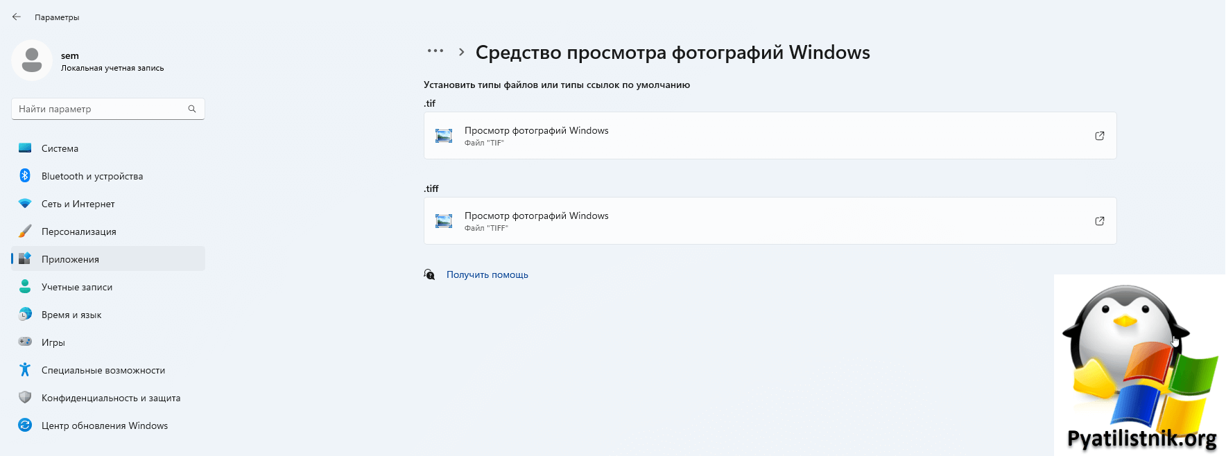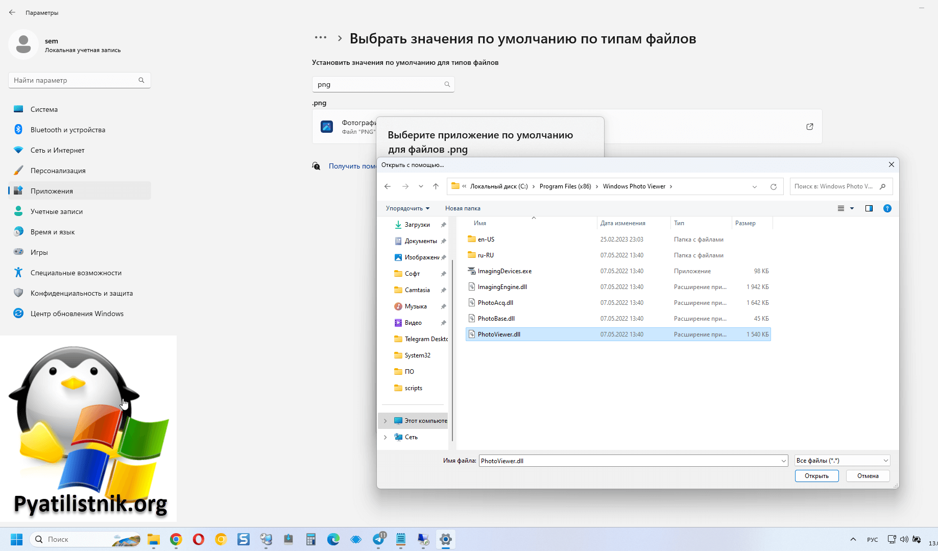 Алгоритм сопоставления нужного расширения фото с Windows Photo Viewer на примере Windows 11 через графический интерфейс