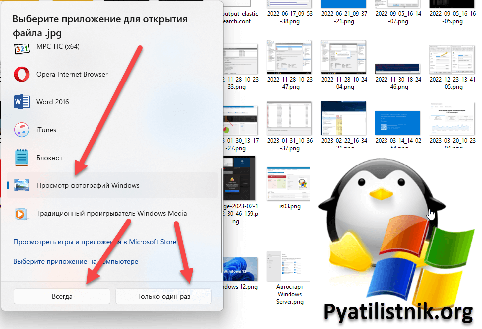 Выберите приложение для открытия текущего формата в виде «Просмотр фотографий Windows». Кажите хотите вы это делать постоянно или единожды. Если выбрали «Всегда», то теперь Windows Photo Viewer у вас будет по умолчанию для запуска фото/картинок для заданного расширения.