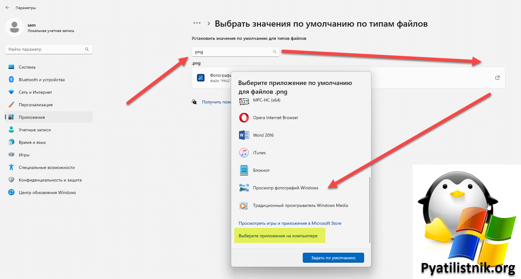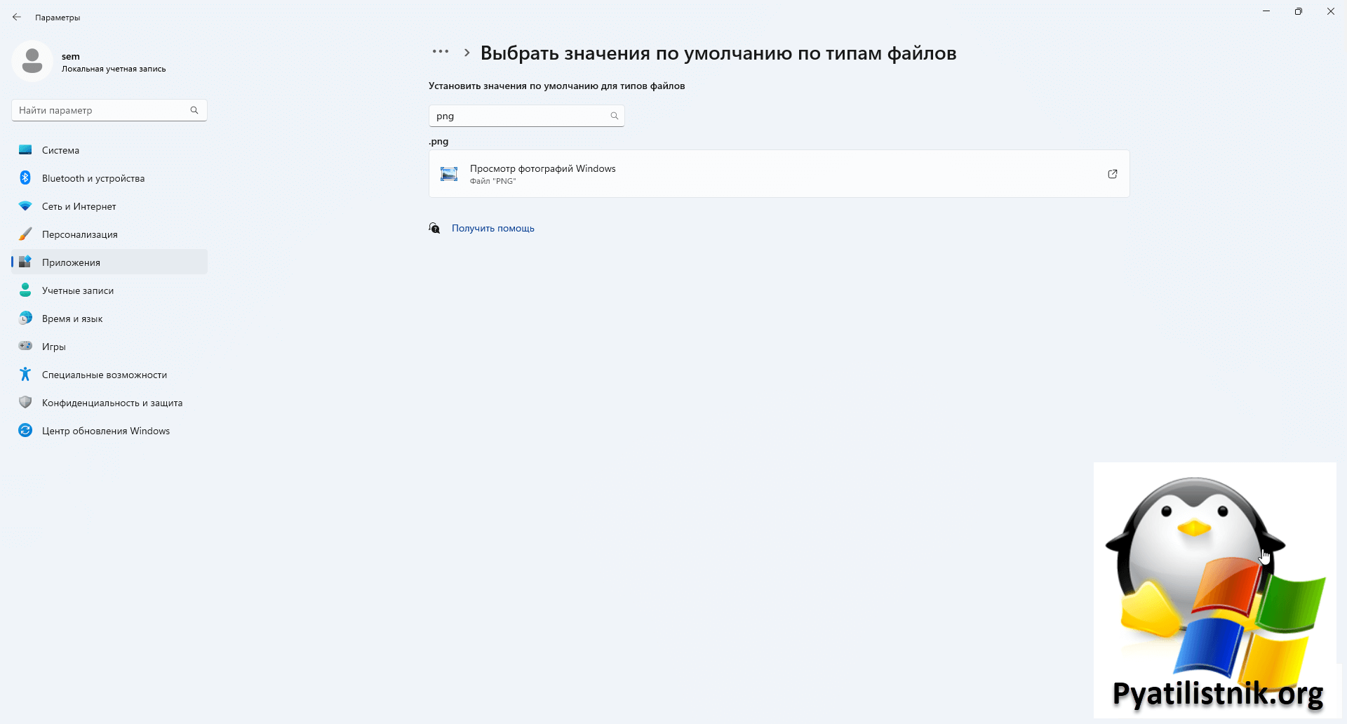 В поисковой строке выберите для примера формат png. По умолчанию тут будет приложение «Фотографии», кликаем по нему. У вас откроется список доступных приложений на которые вы можете заменить текущее. Найдите в списке «Просмотр фотографий Windows»
