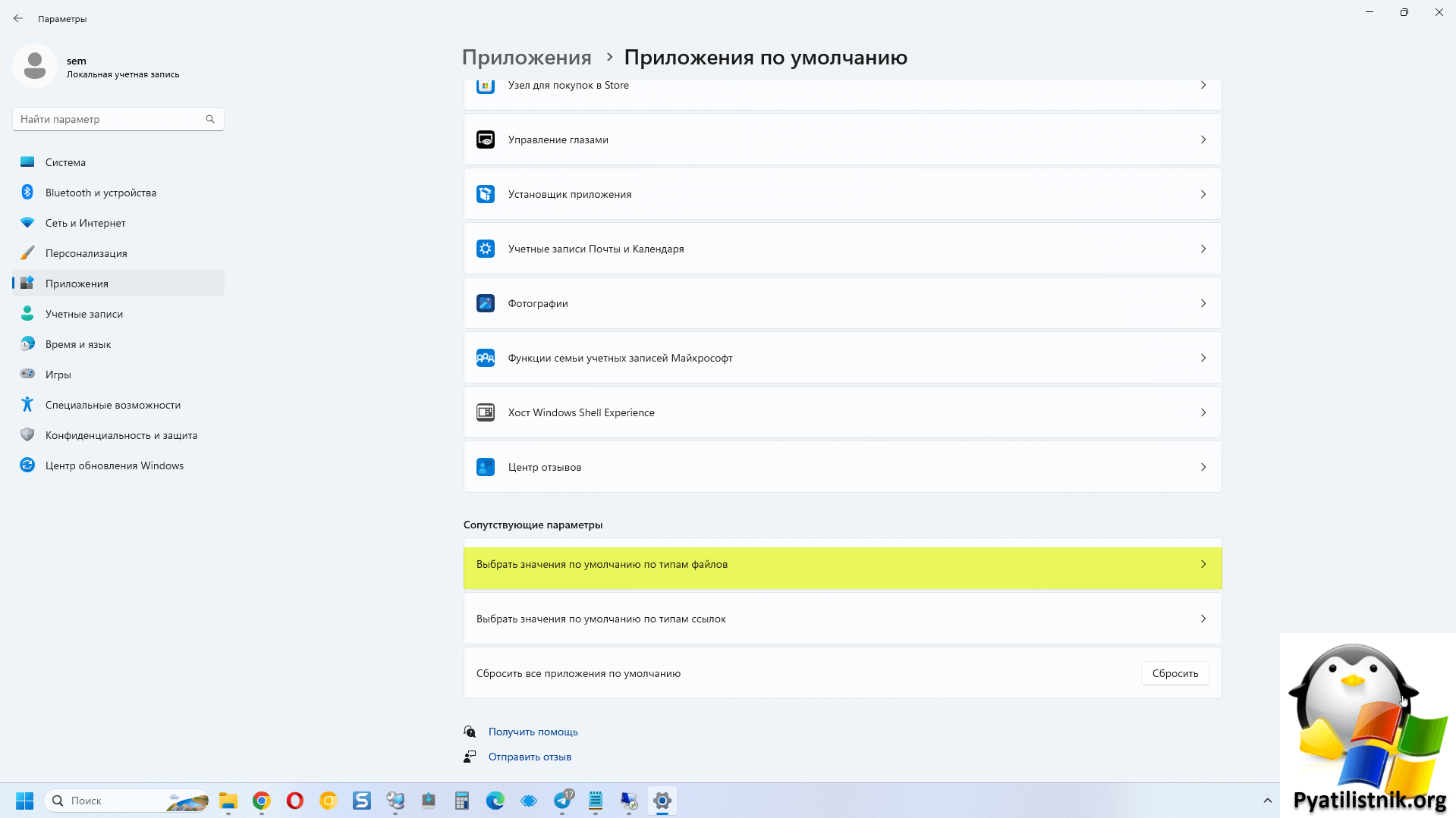 Выходим из данного раздела и перейдем в списке приложений в самом низу в пункт «Выбрать значения по умолчанию по типам файлов»