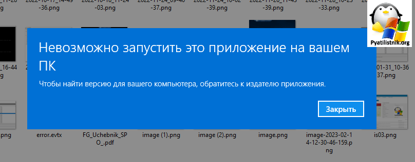 Невозможно запустить это приложение на вашем ПК. Чтобы найти версию для вашего компьютера, обратитесь к издателю приложения