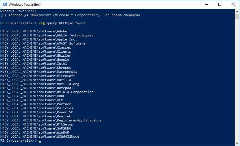 Пример: Reg query HKLM\Software перечислит все подразделы