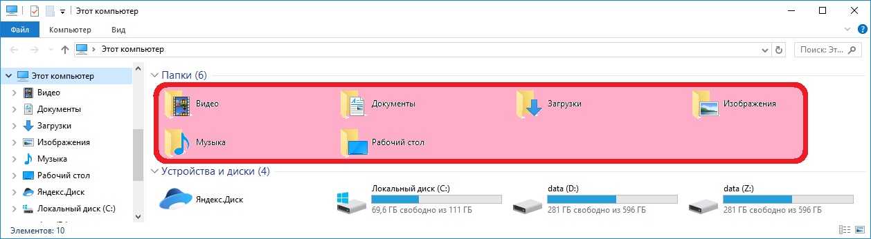 Пример конкретных программ рассматривать не будем, а решим задачу по удалению из окна Проводника на вкладке Мой компьютер лишних папок: Видео, Документы, Загрузки, Изображения, Музыка, Рабочий стол