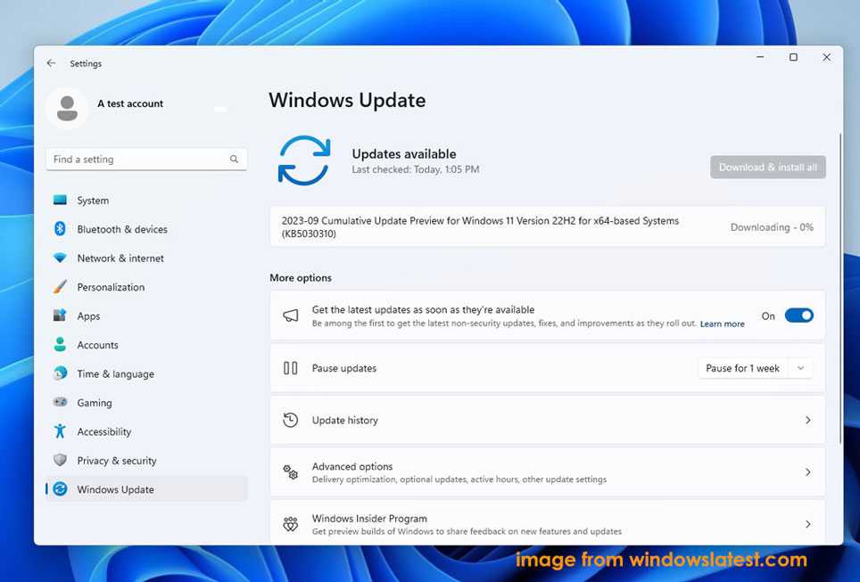 Доступен накопительный предварительный просмотр обновления 2023-09 для Windows 11 версии 22H2 для систем на базе x64 (KB5030310).