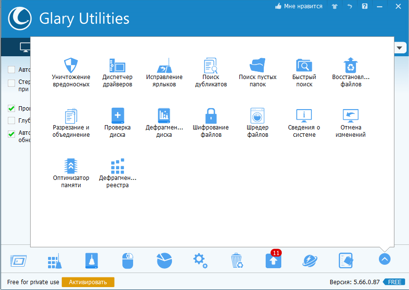 Функции Glary Utilities Free