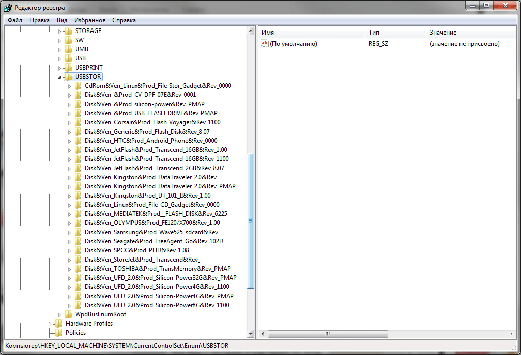 Раздел реестра с историей подключения накопителей