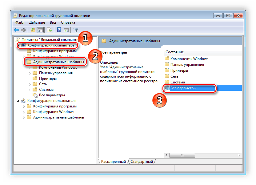 раздел «Административные шаблоны» и перейдите в «Все