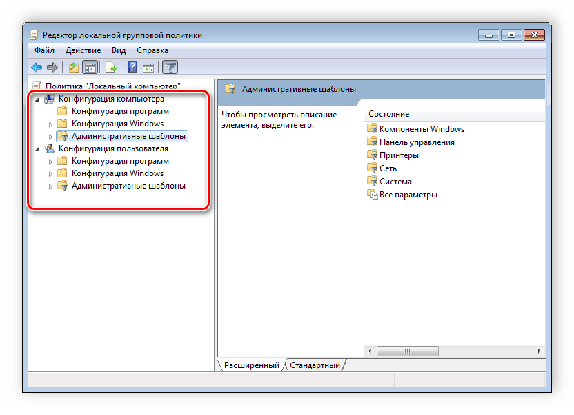 Например, в разделе «Административные шаблоны», в любой конфигурации, находятся