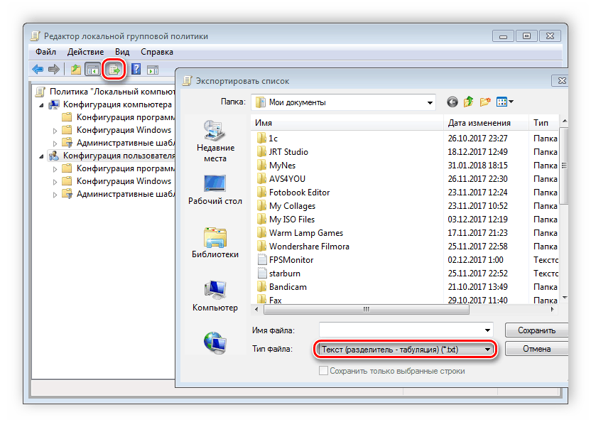 есть специальная функция «Экспорт списка», он переносит все политики в формат TXT и