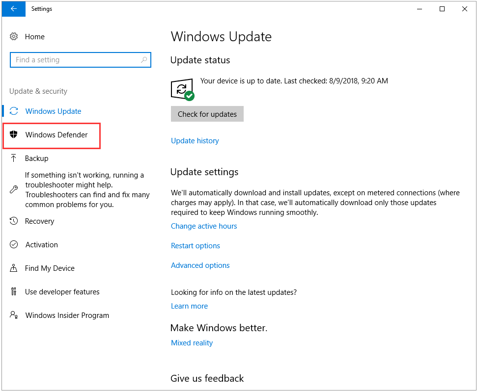 Step 1: Repeat Step 1 to Step 3 mentioned in Scan Your PC to run Windows Defender again.