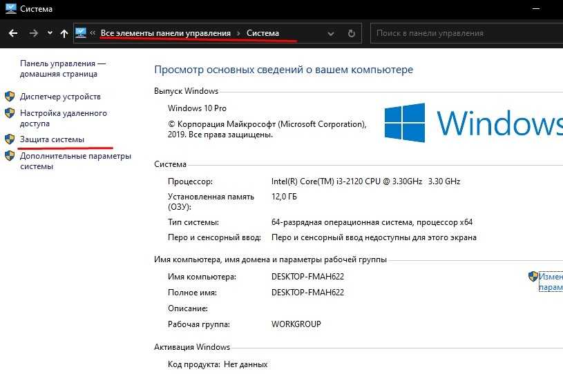 В новом окне перейдите в «Система» и откройте «Защита системы».