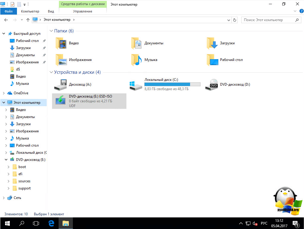 В итоге у вас в списке дисков появится смонтированный ISO, запускаем его.