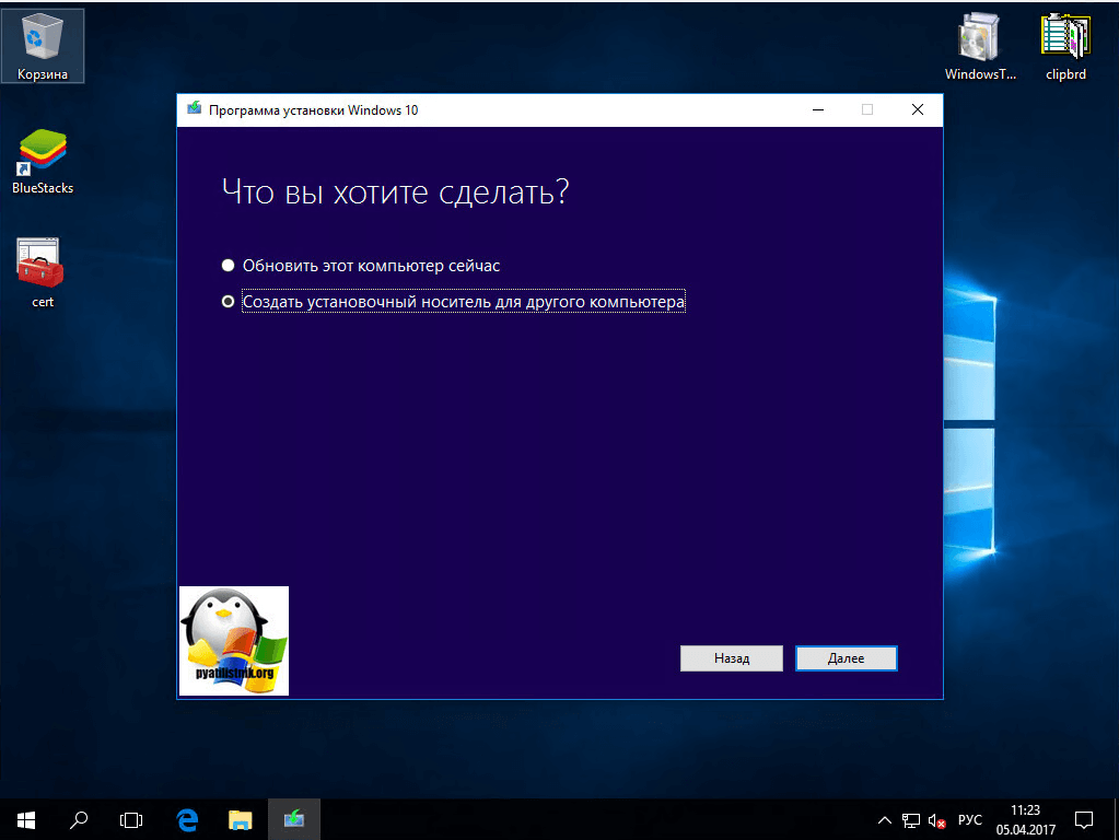 Открываем Update Assistant и доходим до шага, что вы хотите сделать и выбираете создать установочный носитель для другого компьютера, мы с вами так уже делали, когда устанавливали Windows 10 Anniversary Update