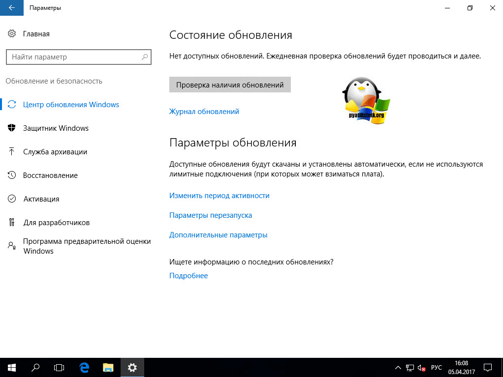 Пункт центр обновления Windows, нажимаем кнопку проверка наличия обновлений.