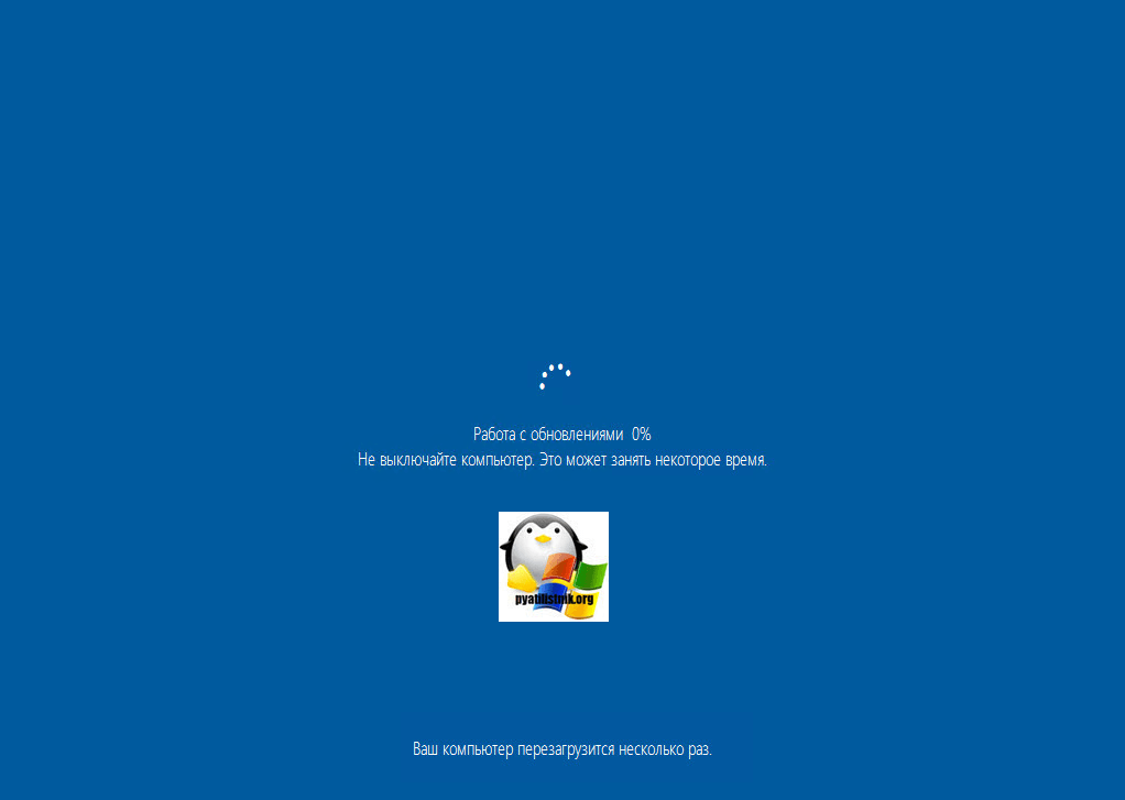 и наконец-то начинается процедура установки Windows 10 Creators Update, ваш компьютер несколько раз будет перезагружен.