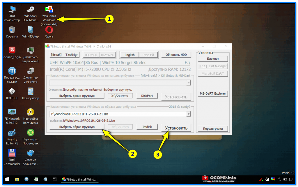 Кстати, как вариант — можно даже не подготавливать загрузочные флешки, а запустить установку Windows прямо из образа ISO, не распаковывая его (например, воспользовавшись LiveCD).