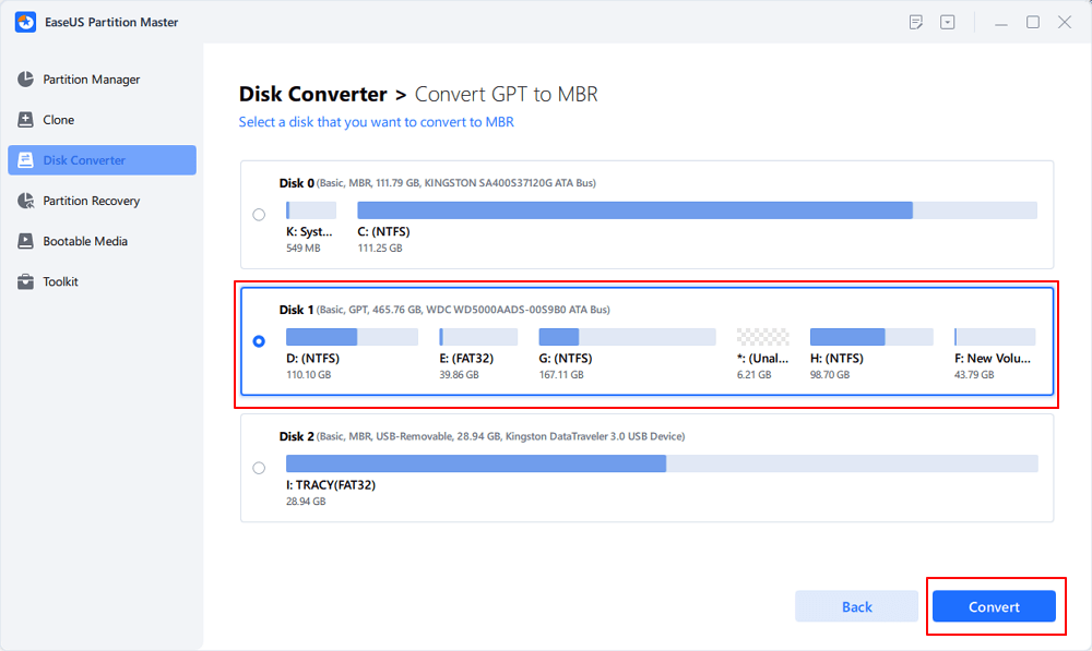 Method 1. Convert GPT to MBR in EaseUS Partition Master Without Data Loss