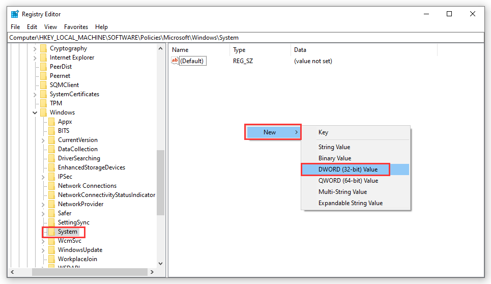 HKEY_LOCAL_MACHINE\SOFTWARE\Policies\Microsoft\Windows\System