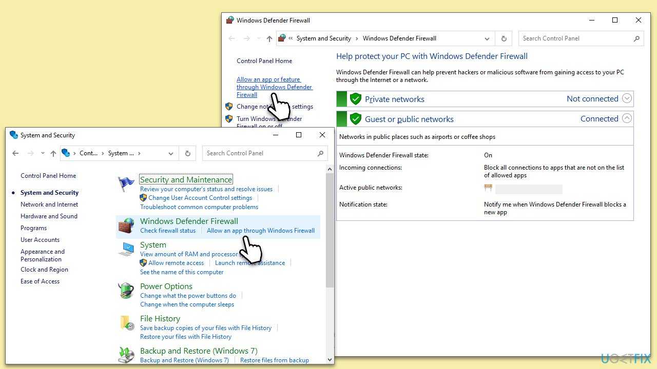 - Click the Allow an app or feature through Windows Defender Firewall located on the left pane.