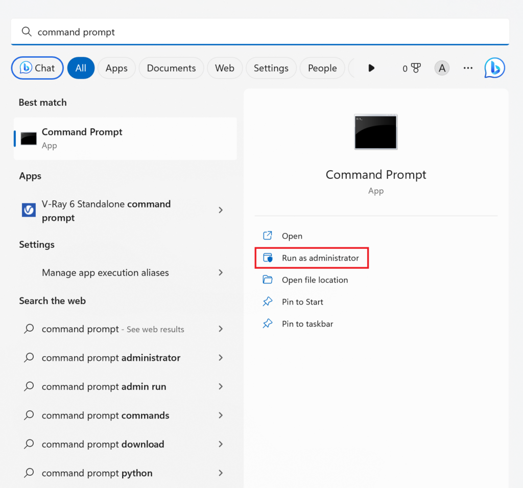 Type «command prompt» into the Windows search bar. Right-click on the Command Prompt app and select «Run as administrator».