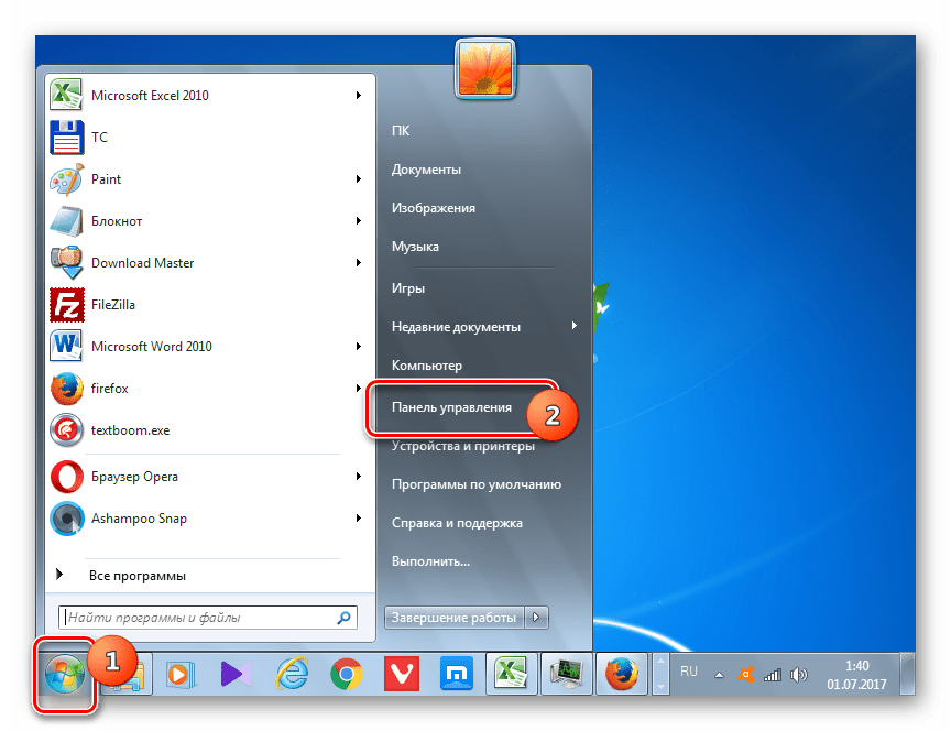 - Жмите «Пуск». В меню остановите выбор на «Панель управления».