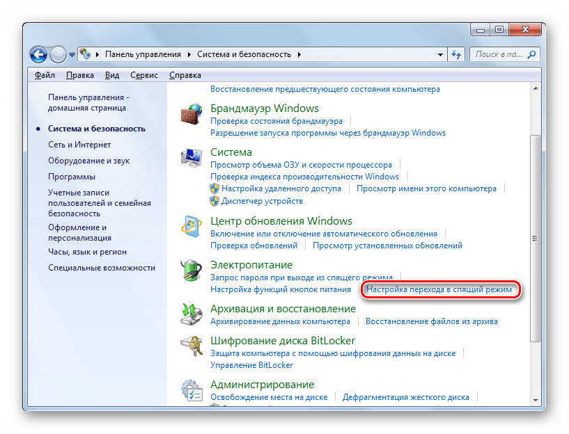 3. Перейдите в раздел «Система и безопасность», а затем — в подраздел «Электропитание».