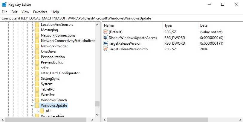 - Переходим по пути HKEY_LOCAL_MACHINE\SOFTWARE\Policies\Microsoft\Windows\WindowsUpdate.
