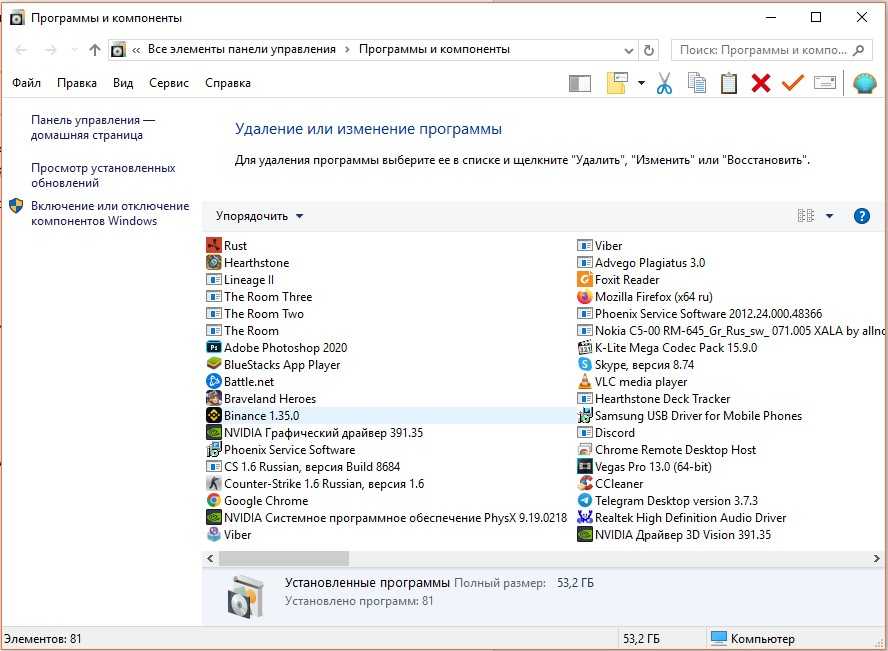 Удаление выполняется через инструмент «Программы и компоненты» на вкладке «Просмотр установленных обновлений».