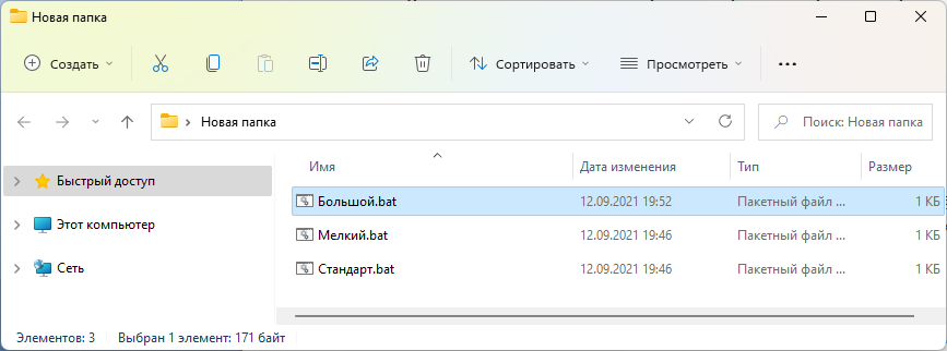 Вы можете быстро менять размер Панели управления Windows 11 без использования сторонней программы. Для этого создается несколько bat-файлов, которые быстро вносят изменения в системный реестр. То есть это упрощенный вариант первого способа, который мы разбирали в начале статьи.