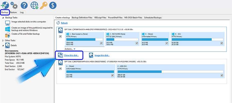 - Отметьте галочкой системный диск и нажмите Clone This Disk