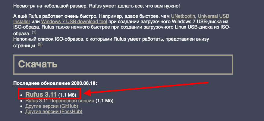 Скачиваем программу с официального сайта rufus.ie Лучше именно по той кнопке, что у меня указана.