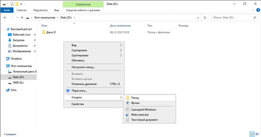 1. Перейдите в любой каталог и нажмите сочетание CTRL + SHIFT + N, которое создаст новую папку.