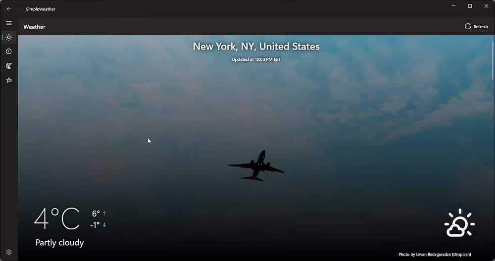 - Open the MSN Weather application.