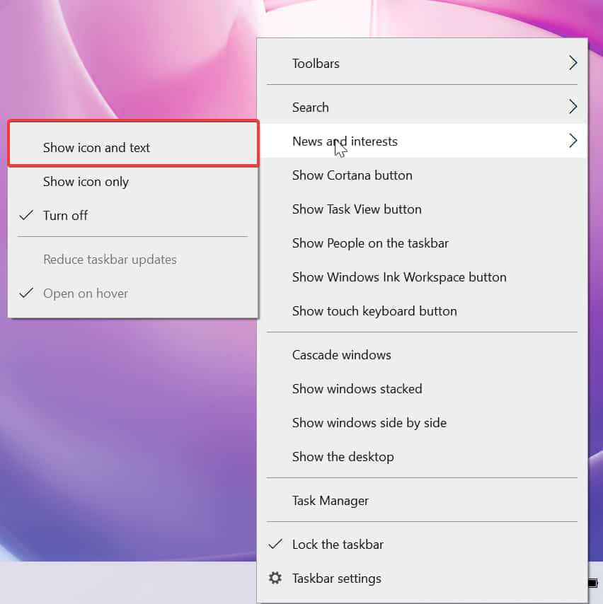 Это означает, что включение виджета «Новости и интересы» автоматически заставит ваше устройство с Windows 10 отображать температуру на панели задач.