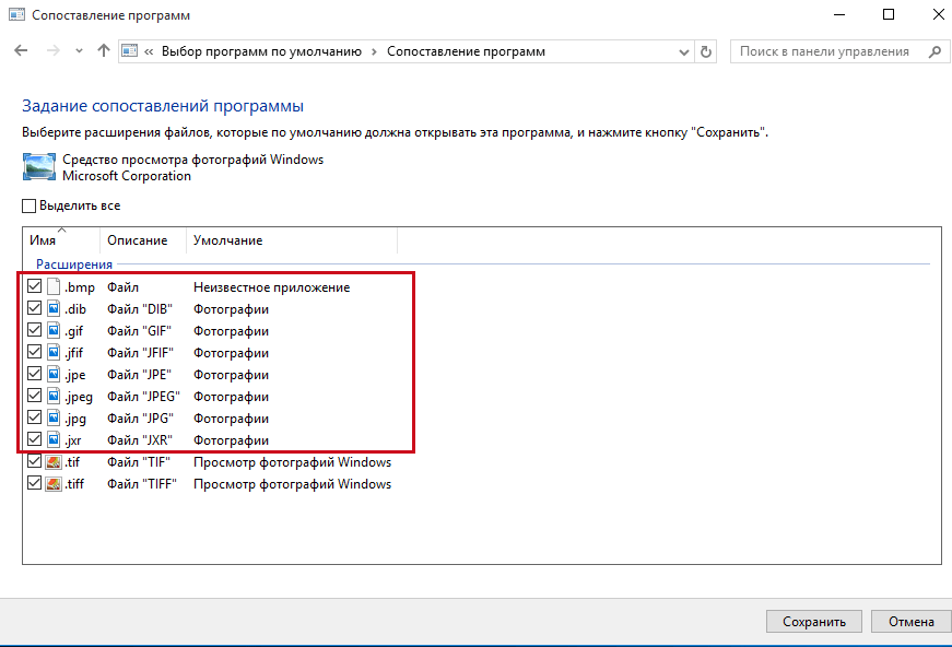 Если хотите разрешить использование старой программы отображения только для определённых форматов, то самостоятельно выберите из списка подходящие команды. После того как выполнение команд завершится, вернитесь к инструкциям «Использование контекстного меню» и «Изменение параметров», чтобы установить приложение «Просмотр фотографий» в качестве программы по умолчанию.