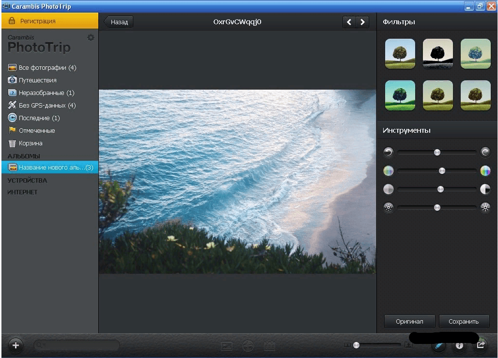 Особенность приложения заключается в том, что оно позволяет создавать папки для фотографий, разбивая их по группам. Вам не придётся перемещать снимки в проводнике, ведь собрать все нужные картинки можно будет прямо в Carambis PhotoTrip. В приложении также есть встроенный редактор, позволяющий изменить цвет, яркость и другие параметры снимка. Скачать программу можно также с официального сайта.
