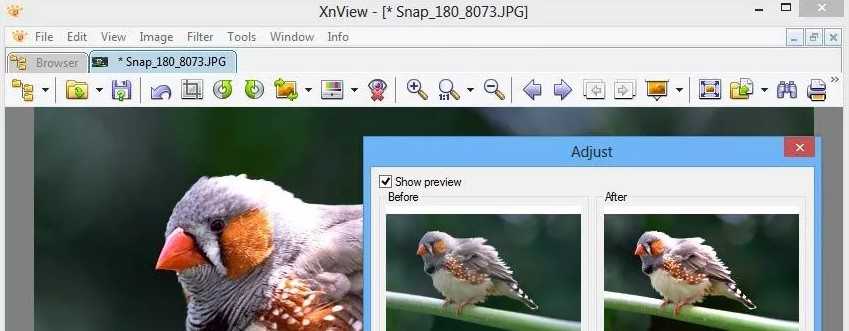 Работайте с XnView бесплатно при условии некоммерческого использования. Поддерживает 500 форматов, позволяет конвертировать файлы. Позволяет смотреть видео и слушать музыку. Интерфейс простой. Имеется много встроенных инструментов.Особенности: