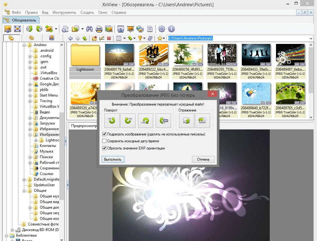 Приложение XnView умеет не только показывать изображения, но и изменять их формат. У него имеется встроенный проводник, благодаря которому можно легко найти нужные файлы. В настройках программы можно указать методы сортировки и отображения снимков. Скачать программу можно с официального сайта.