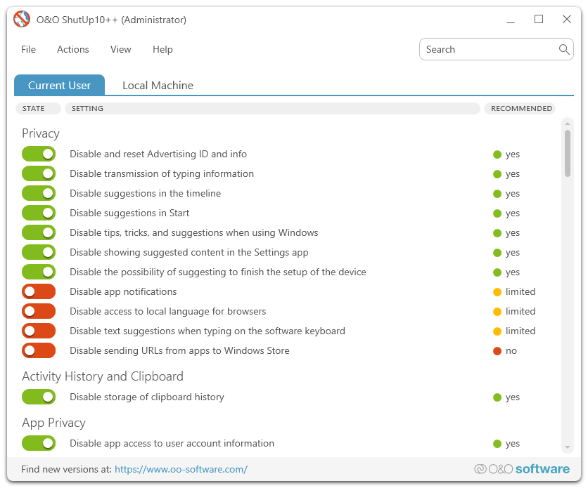 Have you ever wanted to turn off certain features on your Windows 10 PC? O&O ShutUp10 allows you to do just that, making it one of the best Windows 11 privacy tools. It is a free tool that helps you configure and disable various privacy settings in Windows 11, such as disabling data collection and telemetry services or blocking Ads.