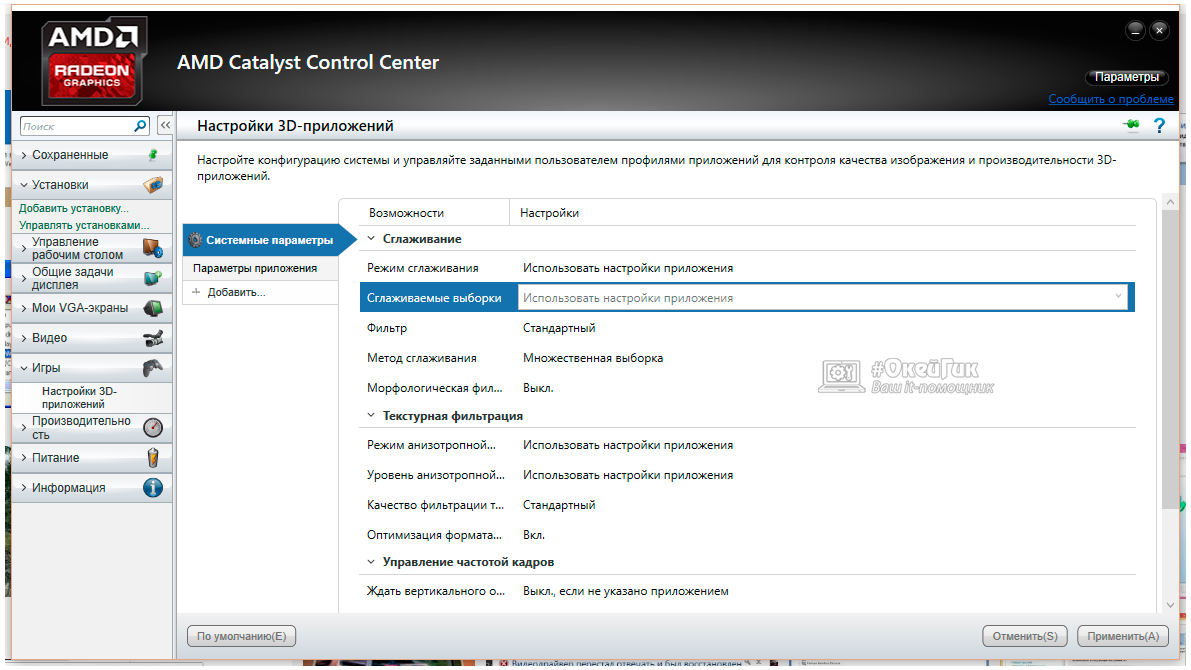 Чтобы устранить недостаток, нужно открыть панель управления видеокартой и привести настройки в соответствие с графическими параметрами, установленными в игре.