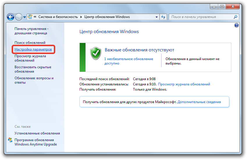 - На боковой панели слева открыть ссылку «Настройка параметров».