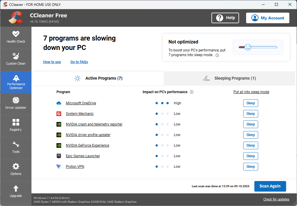 The CCleaner analyzes the PC performance and advises fixing the problems to increase the speed. It will advise you to delete unused files, change settings, turn off some applications, and delete trackers. Also, it includes smart cleaning and scheduled PC cleaning based on the check-up information.